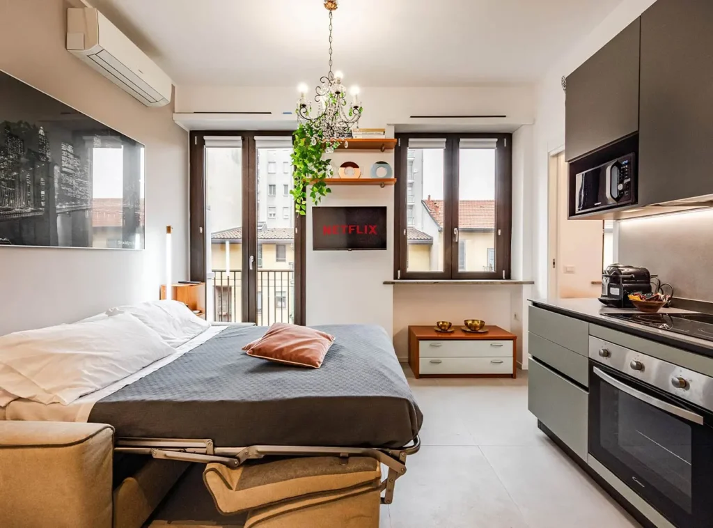 In zona Washington, questo bilocale in Via Egadi 12 è una soluzione perfetta per l’affitto breve: quartiere elegante, servizi a portata di mano e collegamenti rapidi in metro verso il centro e il Duomo. L’appartamento è moderno, completamente arredato e curato nei dettagli, con camera matrimoniale confortevole, soggiorno luminoso con cucina open-space attrezzata (forno, microonde, macchina del caffè) e bagno raffinato con ampia doccia e lavatrice. Un alloggio che unisce stile e funzionalità, ideale per ospiti che cercano qualità, comodità e una posizione strategica a Milano.
