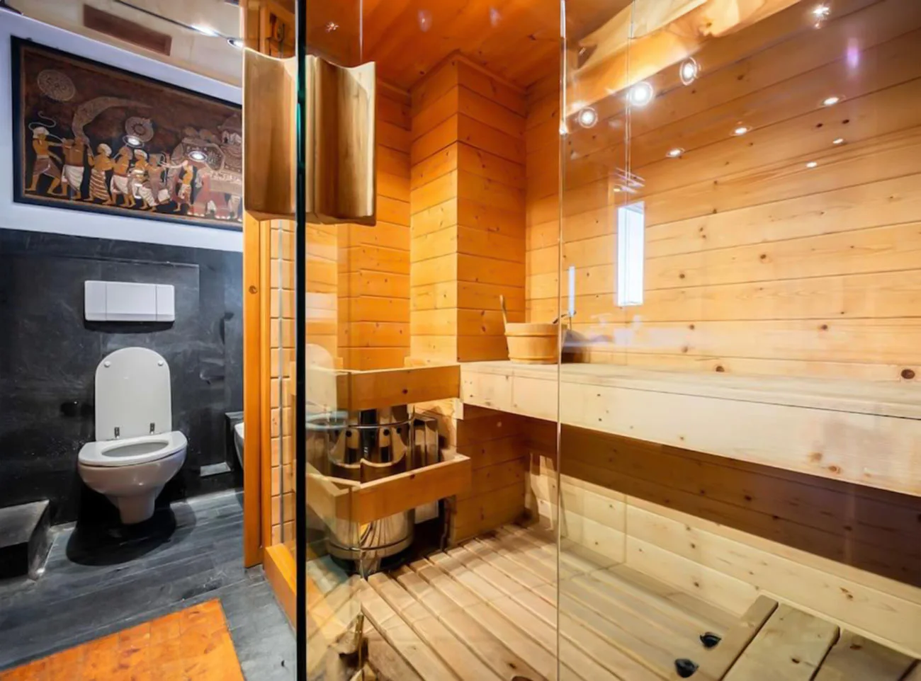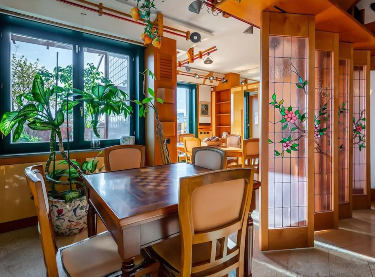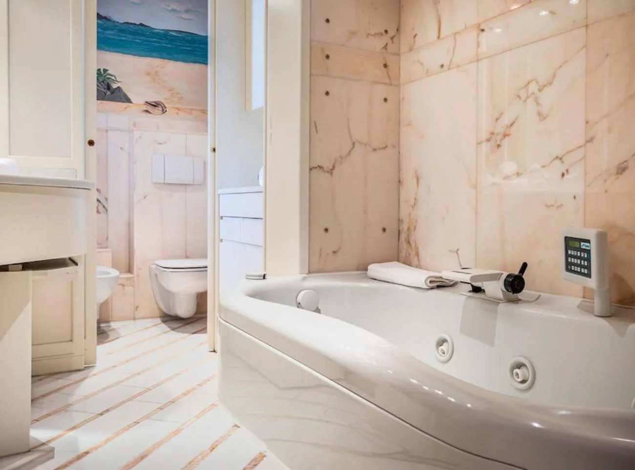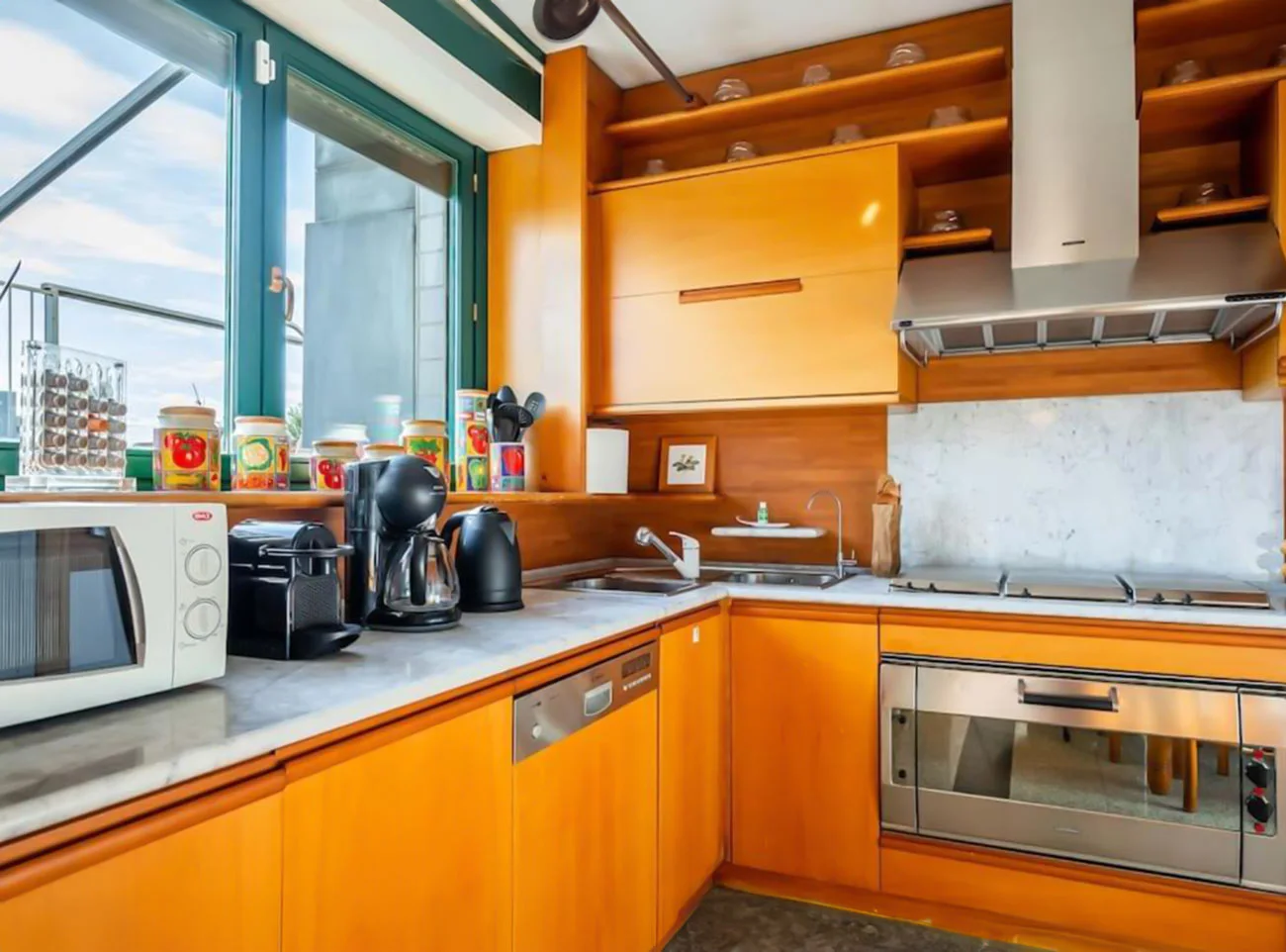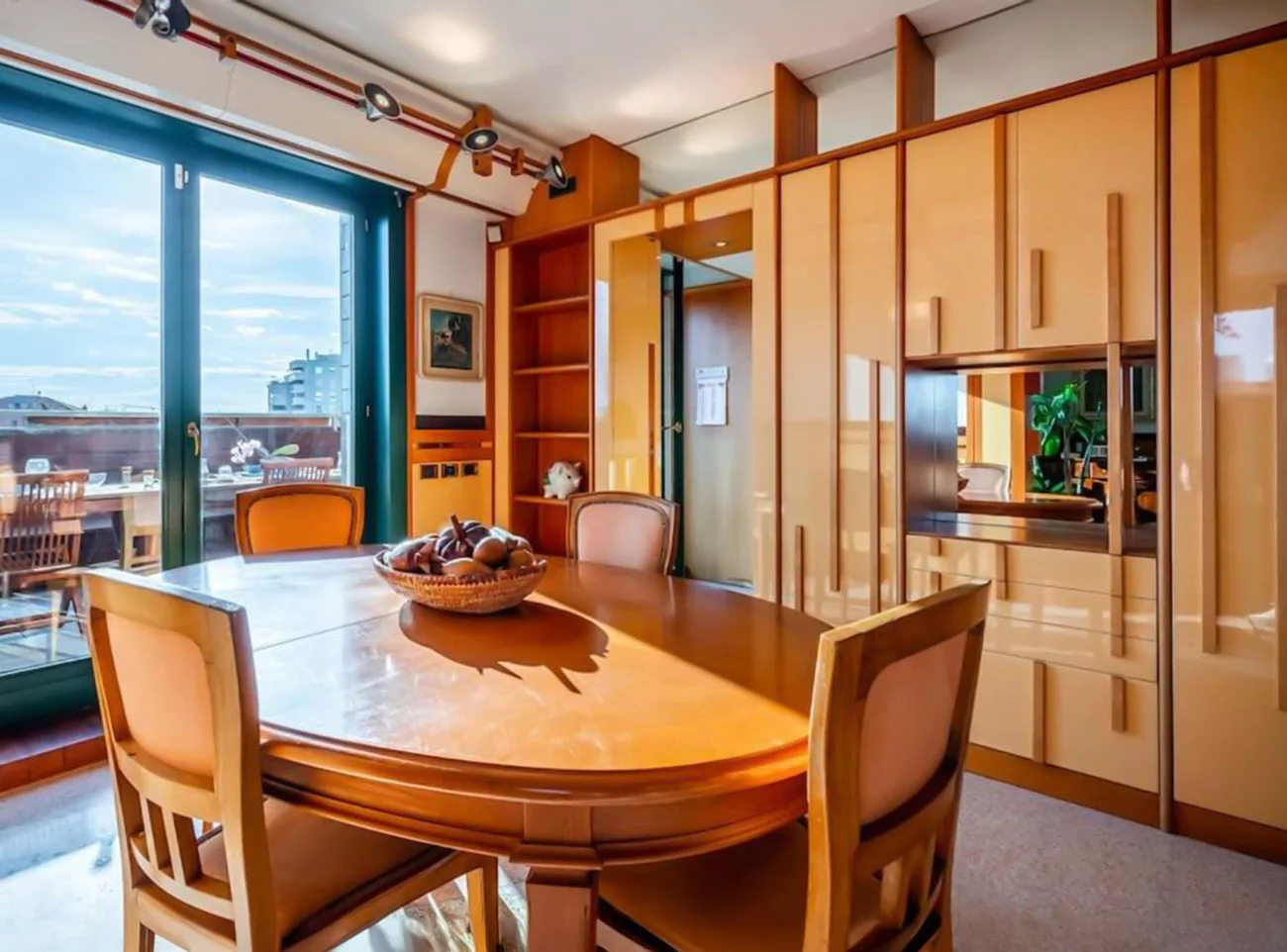L’ampio soggiorno, accogliente e vintage, include un divano letto, camino, Smart TV e tavolo da pranzo. Il soggiorno si apre su un terrazzo ad angolo con vista mozzafiato sulla città. La cucina, accessibile dalla terrazza, è completamente attrezzata. Il primo bagno, lungo il corridoio, è lussuoso e luminoso, con una grande vasca idromassaggio. La penthouse ha una spaziosa camera da letto con Smart TV e accesso a un terrazzo privato, oltre a un bagno moderno con sauna di ultima generazione. Un’altra camera con letto singolo e accesso a un ampio terrazzo è disponibile per gli ospiti. Completa l’alloggio un ufficio privato, ideale per chi necessita di uno spazio tranquillo per lavorare o studiare.