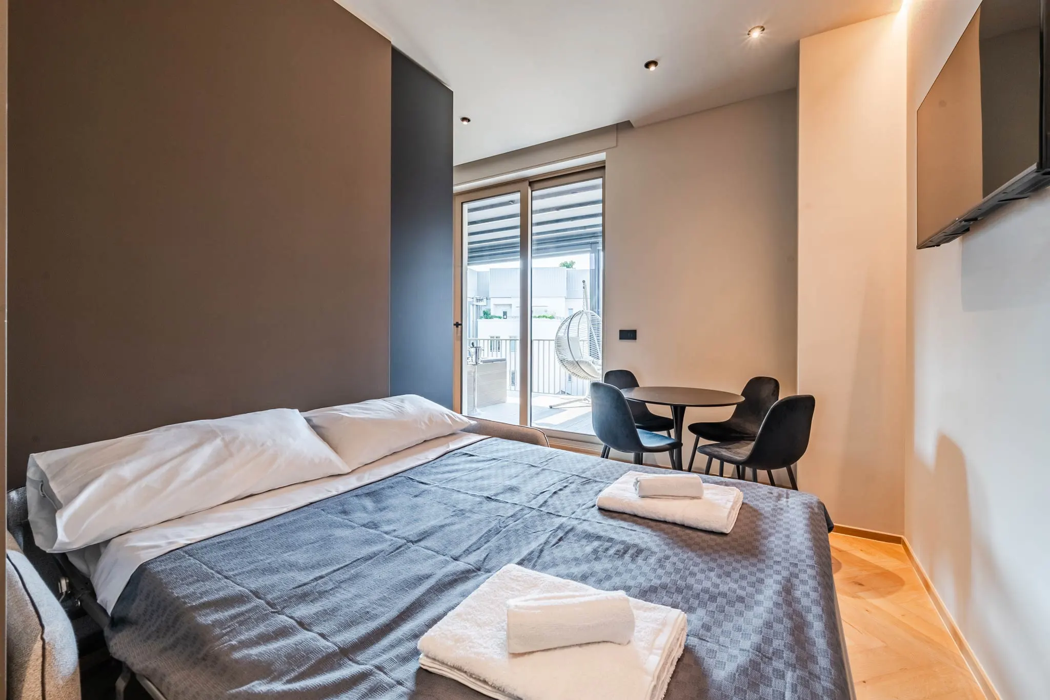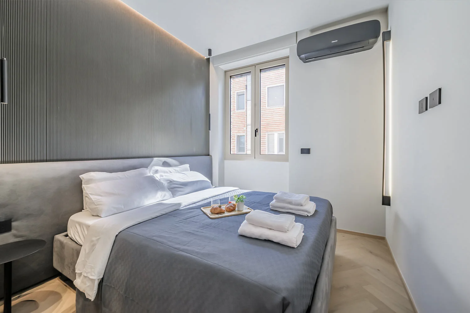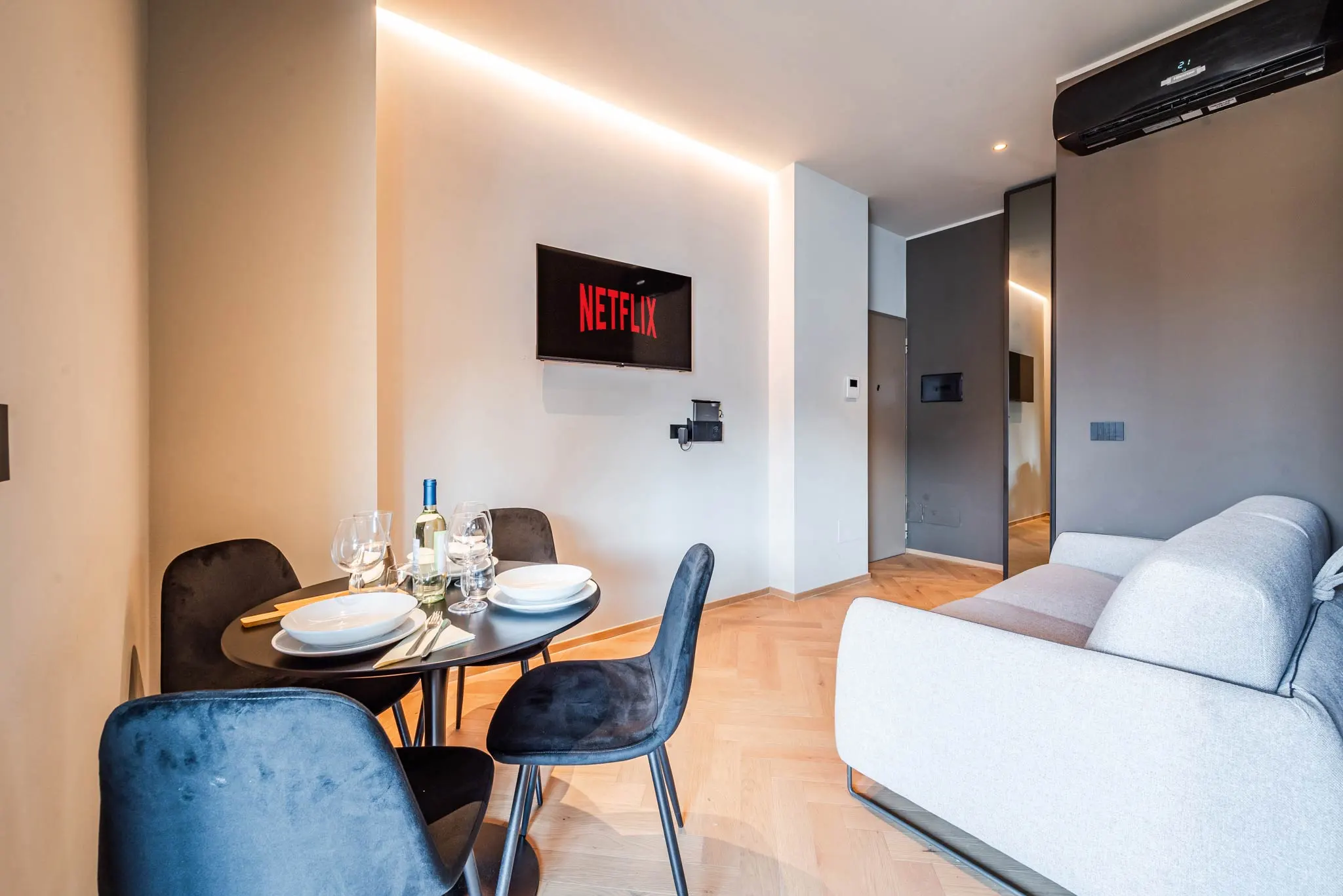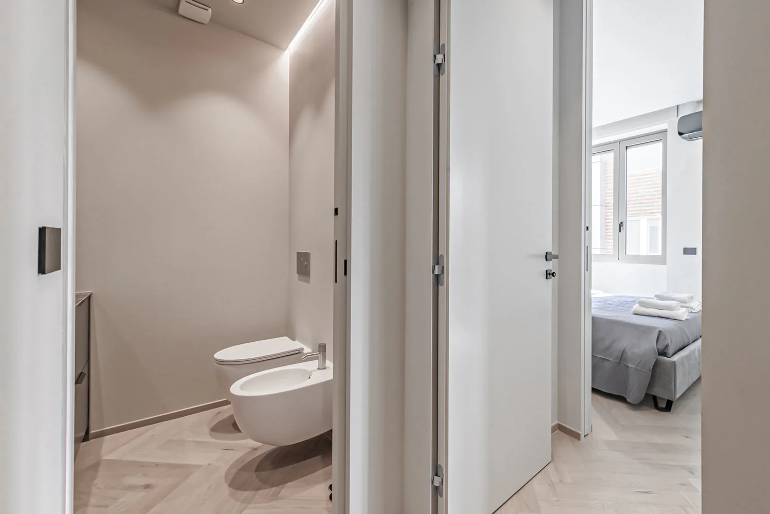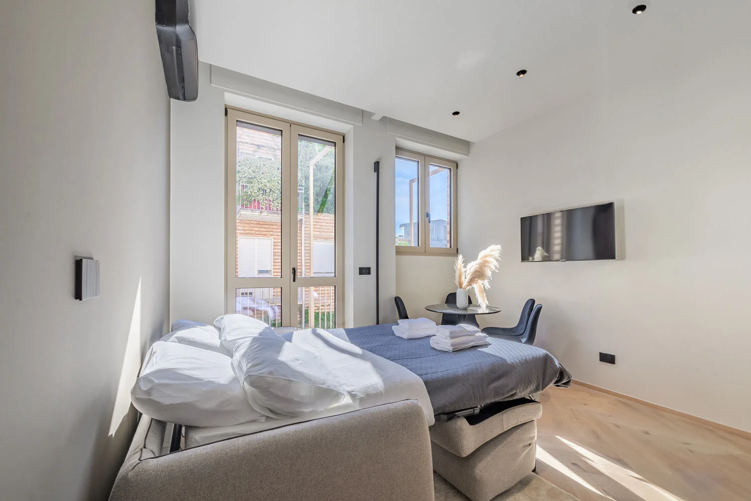 Mmoderno ed elegante accoglie gli ospiti con alti soffitti e design contemporaneo. A sinistra dell’ingresso, c’è un moderno bagno con una grande doccia, ideale per rilassarsi dopo una giornata in città. La camera da letto matrimoniale offre tutti i comfort, inclusa una spaziosa cabina armadio. La cucina, nuova e attrezzata, è perfetta per pranzi o cene, con un tavolo accogliente per momenti conviviali. Dalla cucina, si accede a un balcone con tavolino, ideale per colazioni all’aperto o momenti di relax. La collaborazione con Demora ha migliorato la qualità dell’immobile e aumentato significativamente i ricavi mensili del proprietario, dimostrando i vantaggi di un partner affidabile.